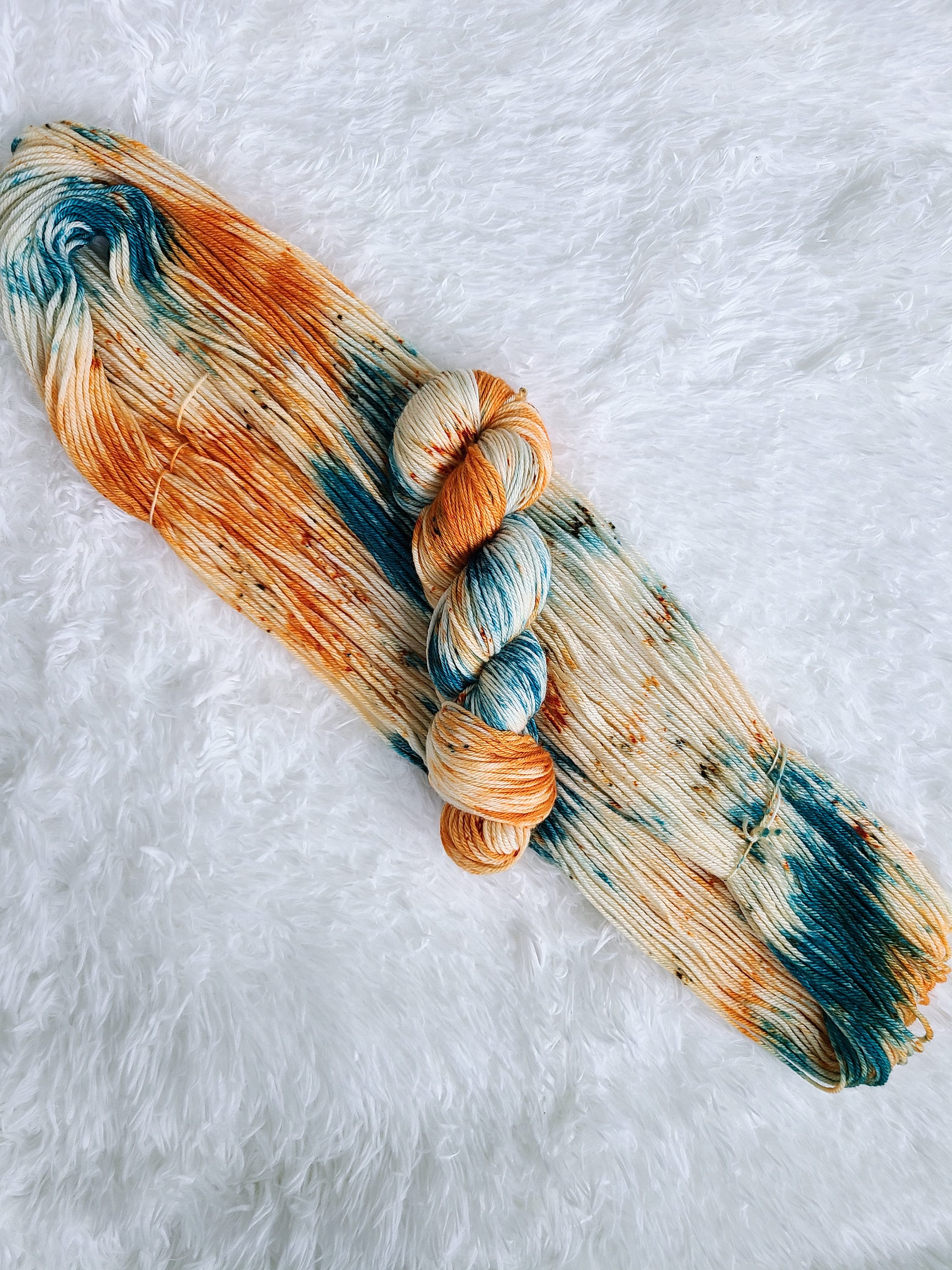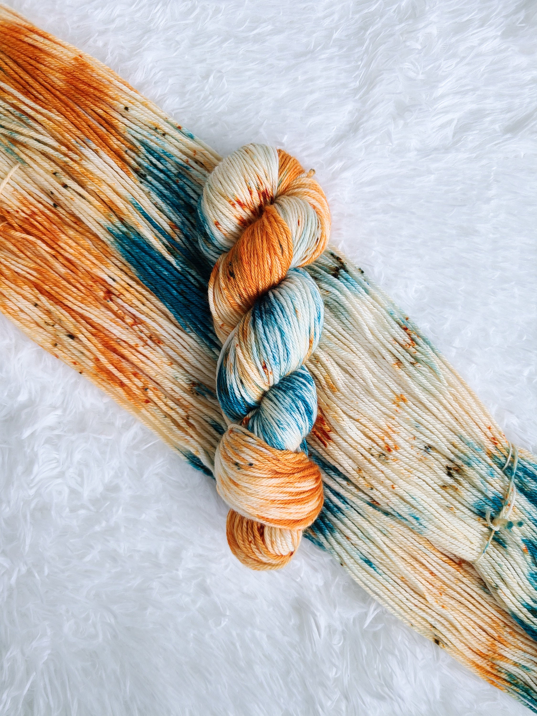 Oh My Gourd is a OOAK (one of a kind) fun speckled yarn with pops of pumpkin and teal on our ultra soft Cozy base.