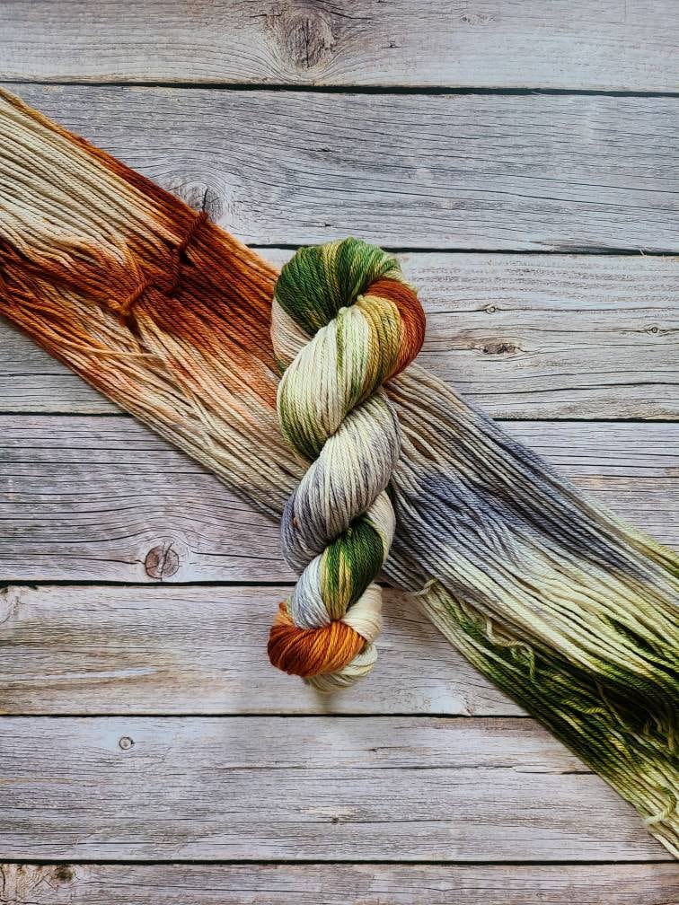 Yarn is dyed using professional acid dyes. Each skein is washed after the dye process is complete, however, minor bleeding may occur with the first wash.