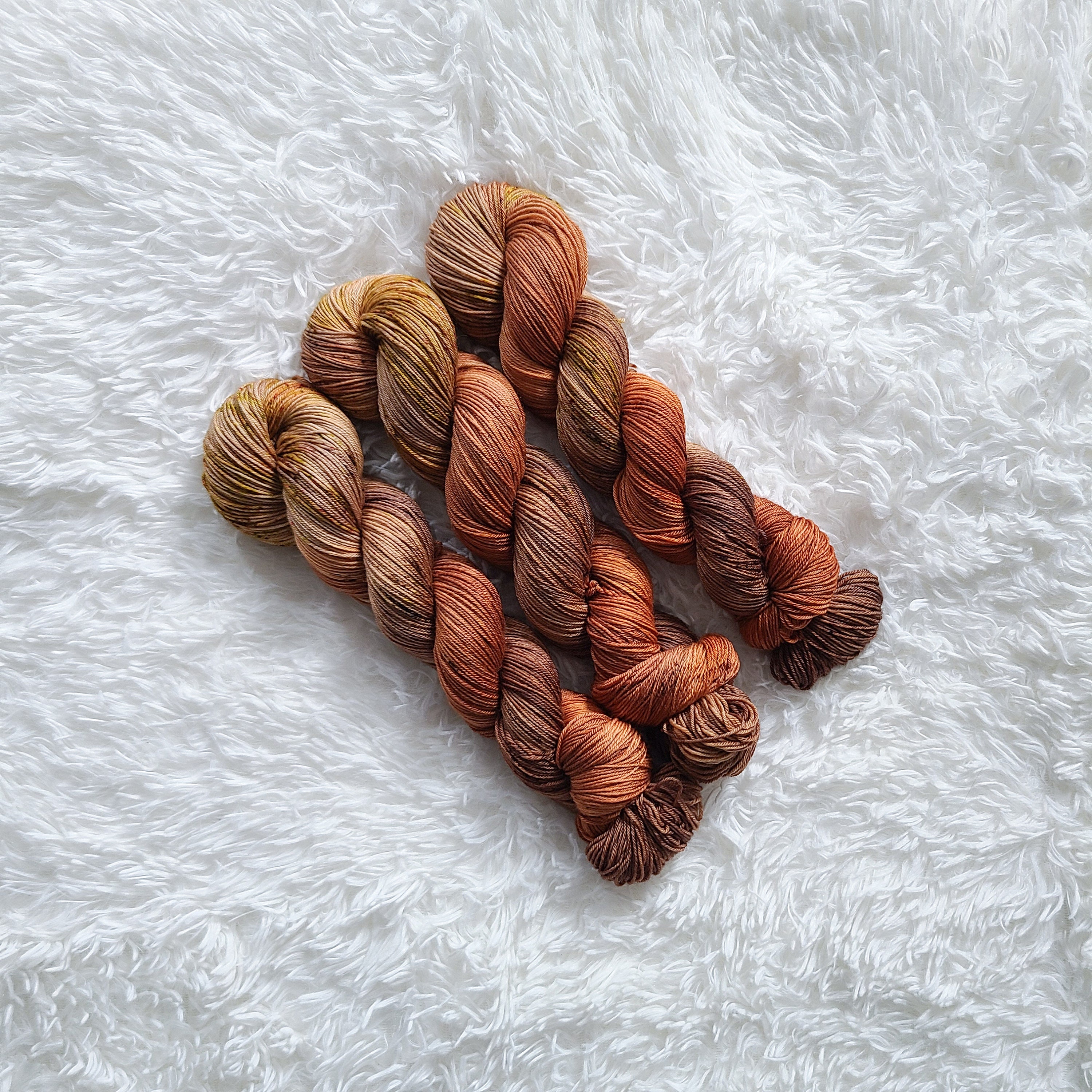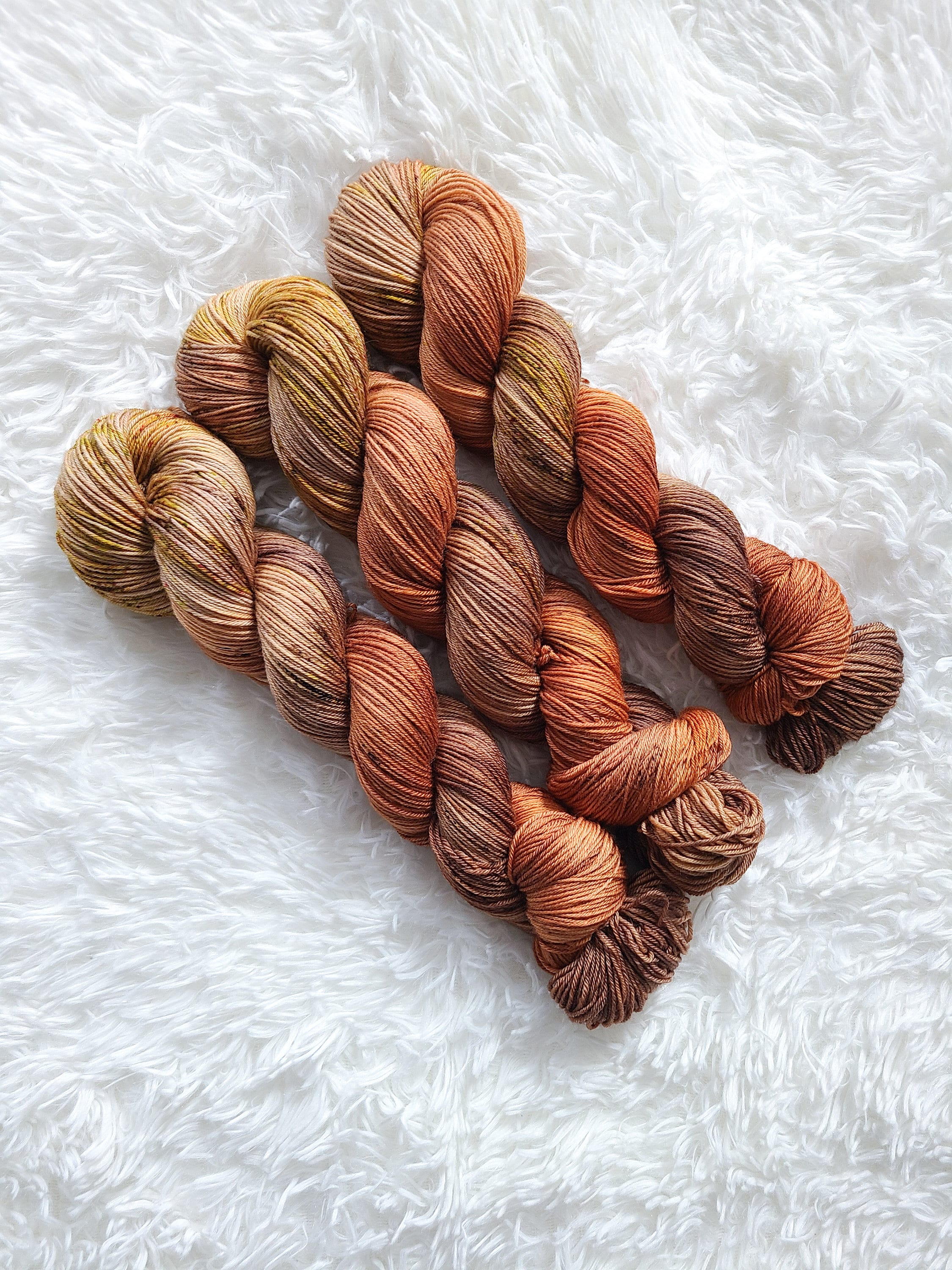 Autumn Vibes is a fall blend of brown and pumpkin with speckles on our Classic Sock base.