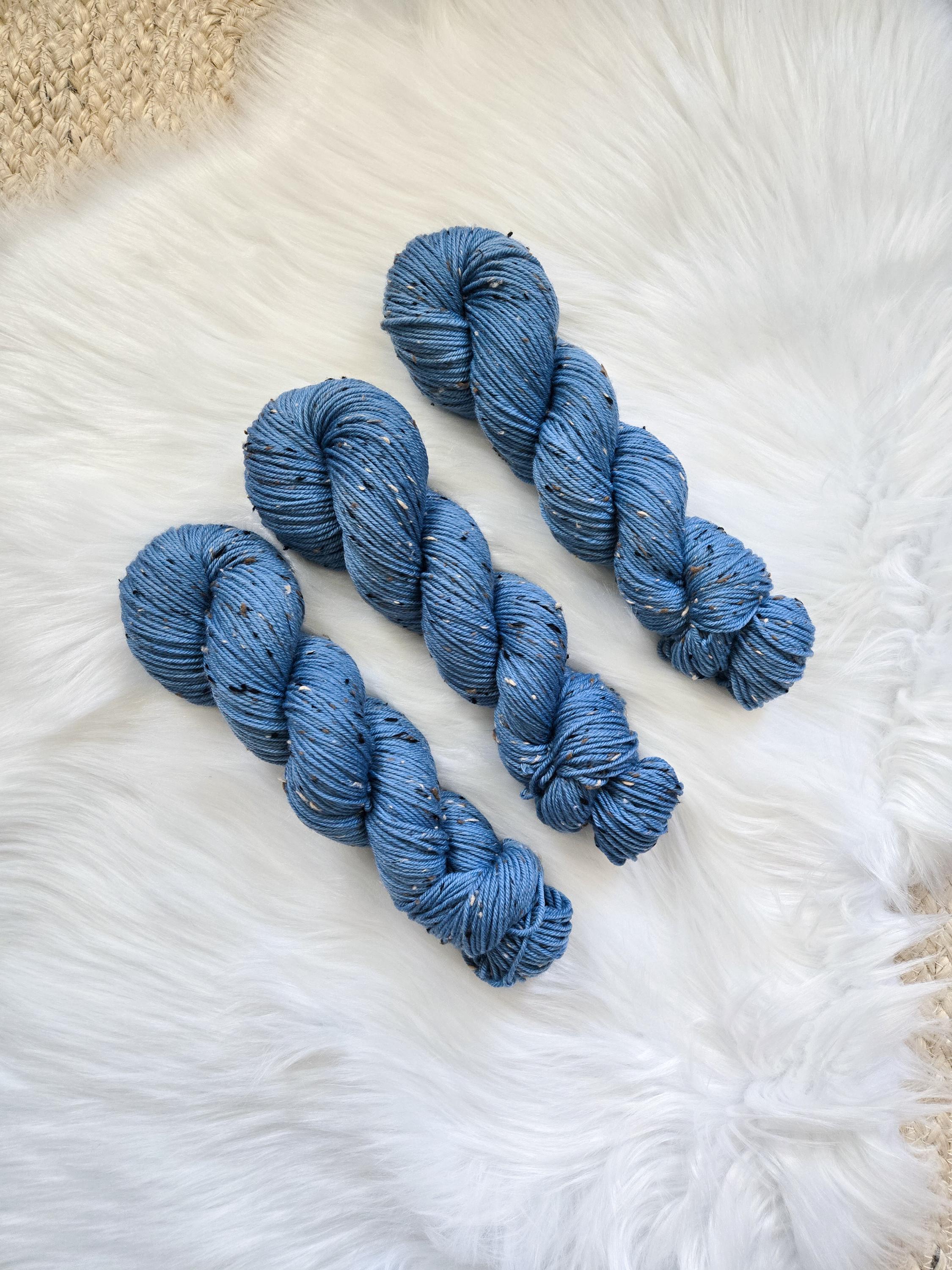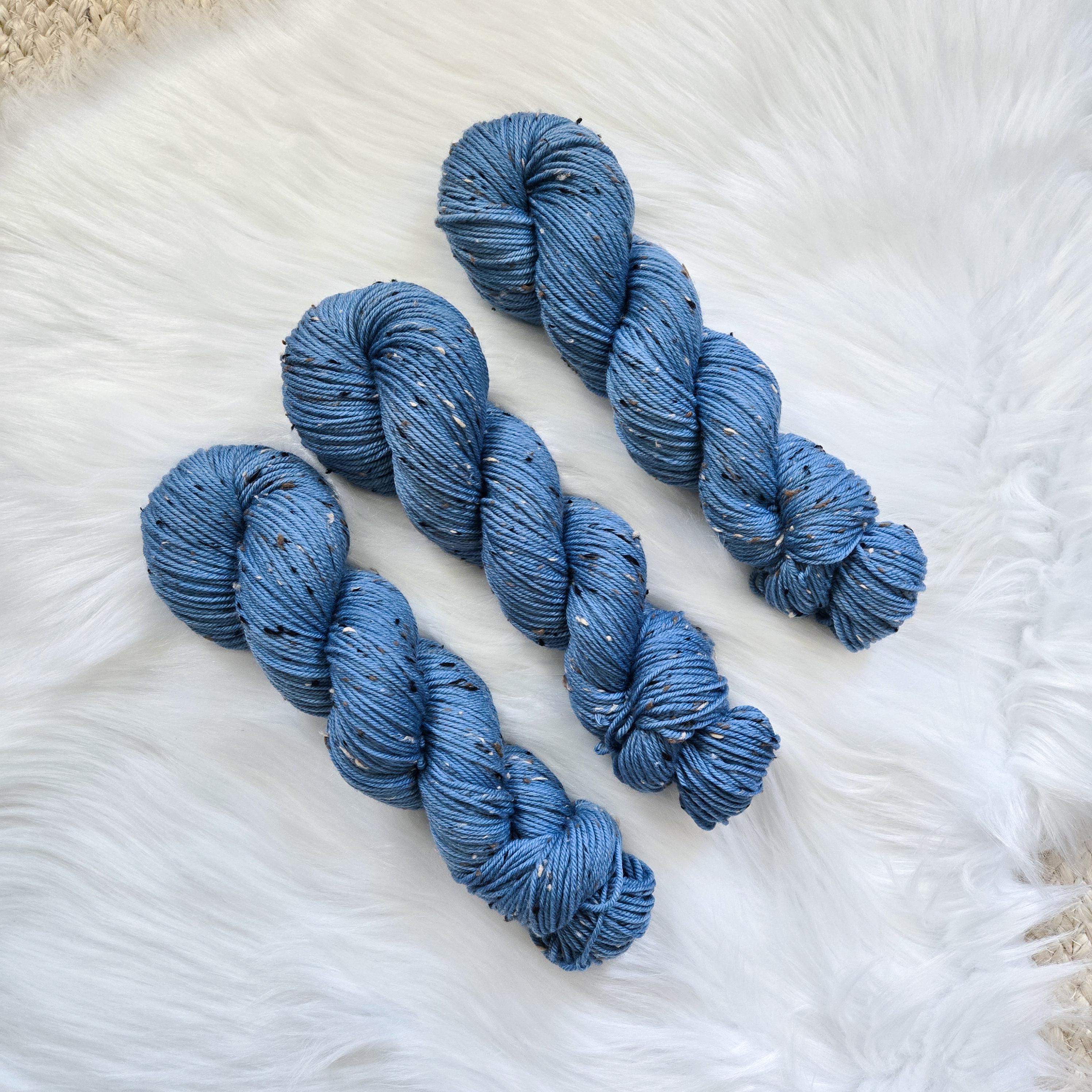 Blue Jean Baby is a medium denim blue on our DK Tweed Base.