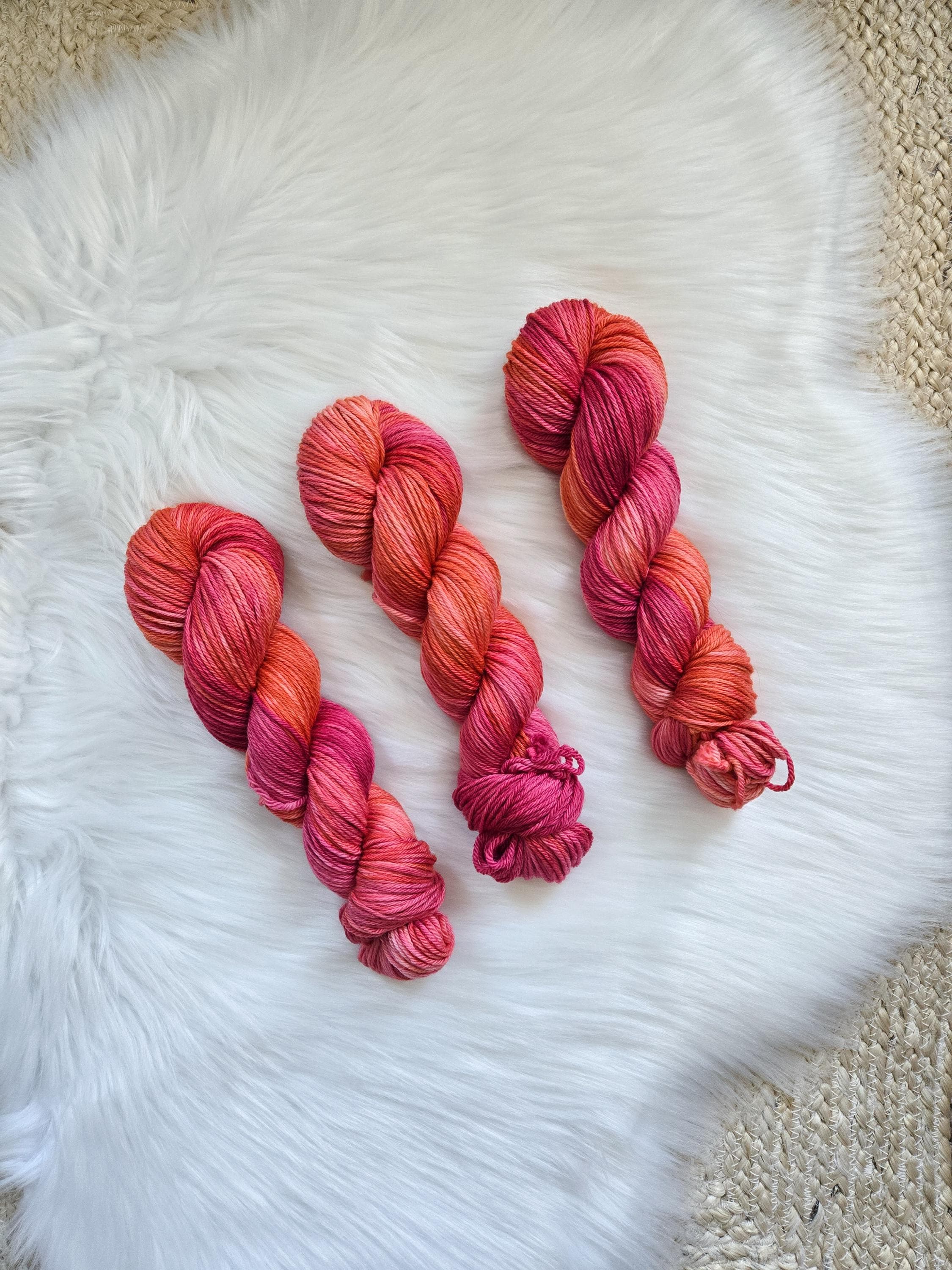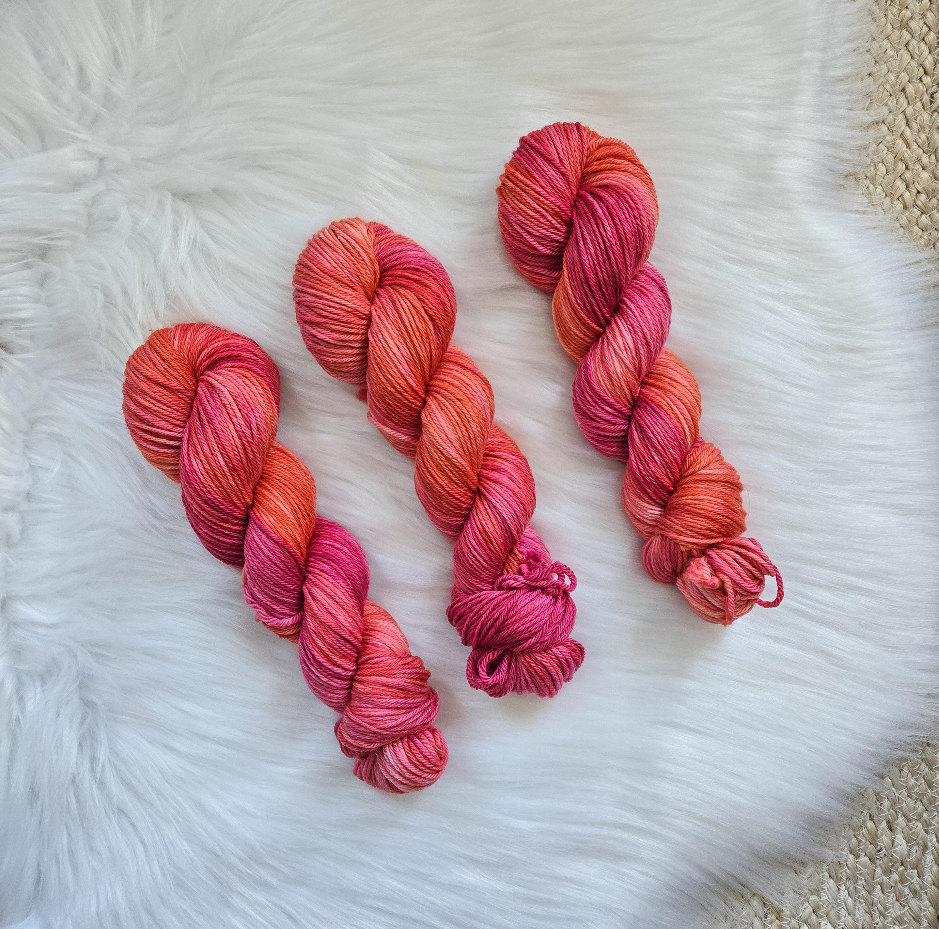 Sailors Delight is a bright blend of pinks and orange on our soft Cozy DK base.